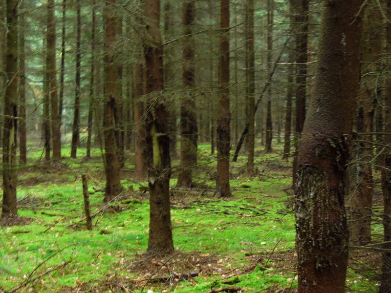 Drzewostan świerkowy wyspałowany przez jelenie (fot. P.Gzyl)
