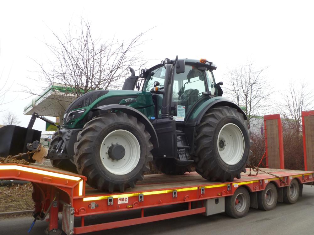 Nowo zakupiony przez Nadleśnictwo zielony ciągnik na czerwonej lawecie - 2016 rok